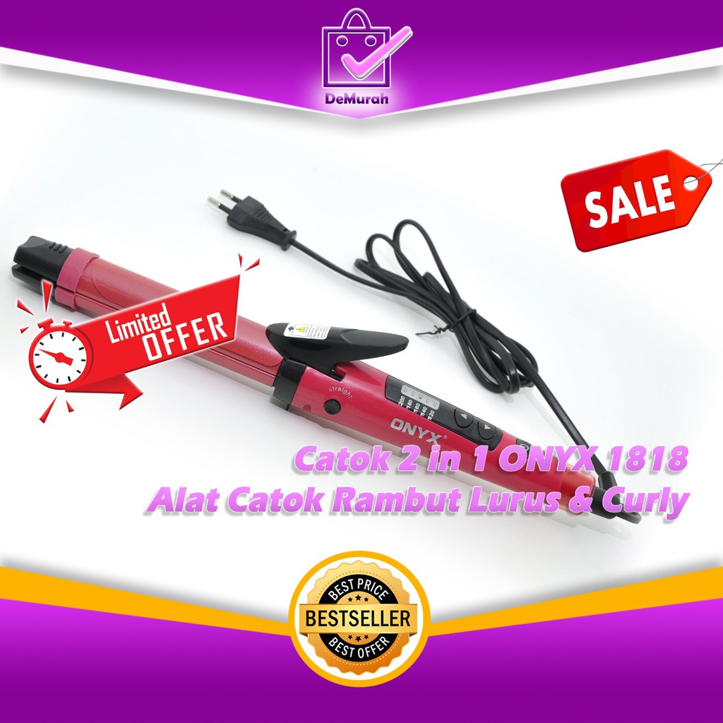 Catok 2 in 1 ONYX 1818 Alat Catok Rambut Lurus Curly Sumber : shopee.co.id
